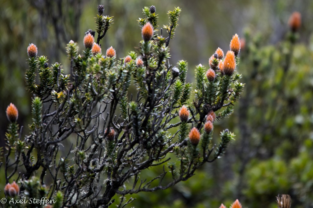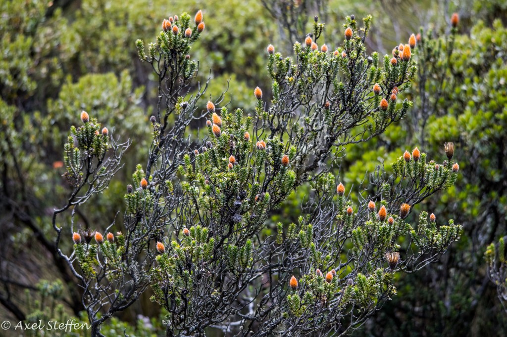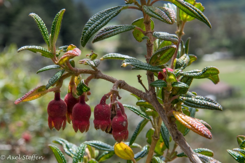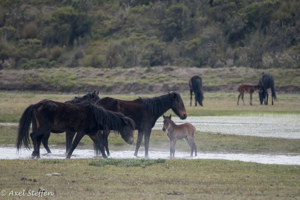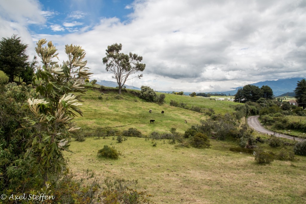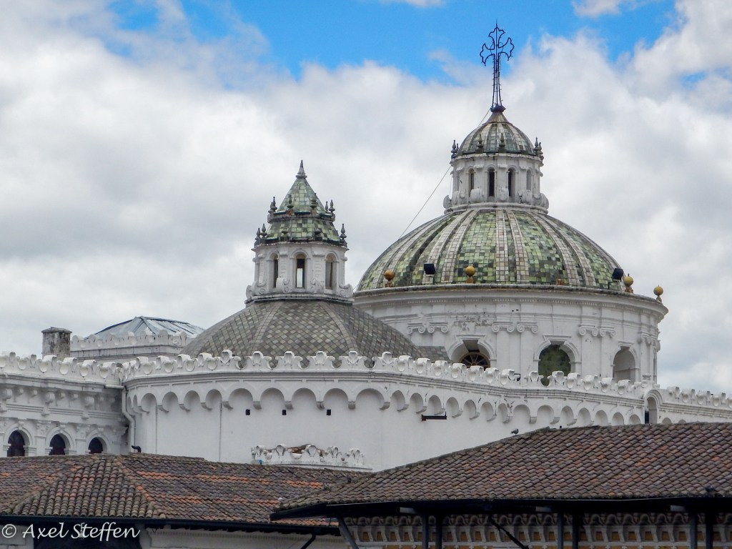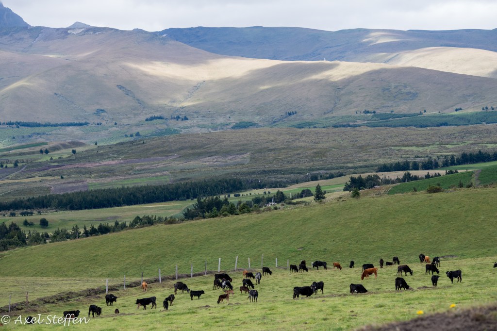 Ausgangs- und Endpunkt unserer Reise nach Ecuador: Quito, in einem Tal 2850 m über dem Meer gelegen. Aber es geht noch höher: Unsere letzte Etappe führt uns auf der Strasse der Vulkane zum Cotopaxi. Der aktive Vulkan ist 5897 m hoch…wir schaffen es bis zu einer Schutzhütte auf 4864 m…höher ist Alexander von Humboldt, der den Cotopaxi 1801 bestiegen hat, auch nicht gekommen. Die Nacht zuvor übernachten wir auf einer Hazienda auf gut 3500 m Höhe. Eine den Alpen ähnliche Bergflora erwartet uns. Zweimal sehen wir hoch über uns den Condor kreisen…zu hoch selbst für mein Tele….und selbst in dieser Höhe sind Kolibris zu entdecken. Wir steigen sehr langsam in Serpentinen hinauf…ganz schön dünne Luft ! Wir haben unbeschreiblich großes Glück, den Cotopaxi frei von Wolken zu sehen !