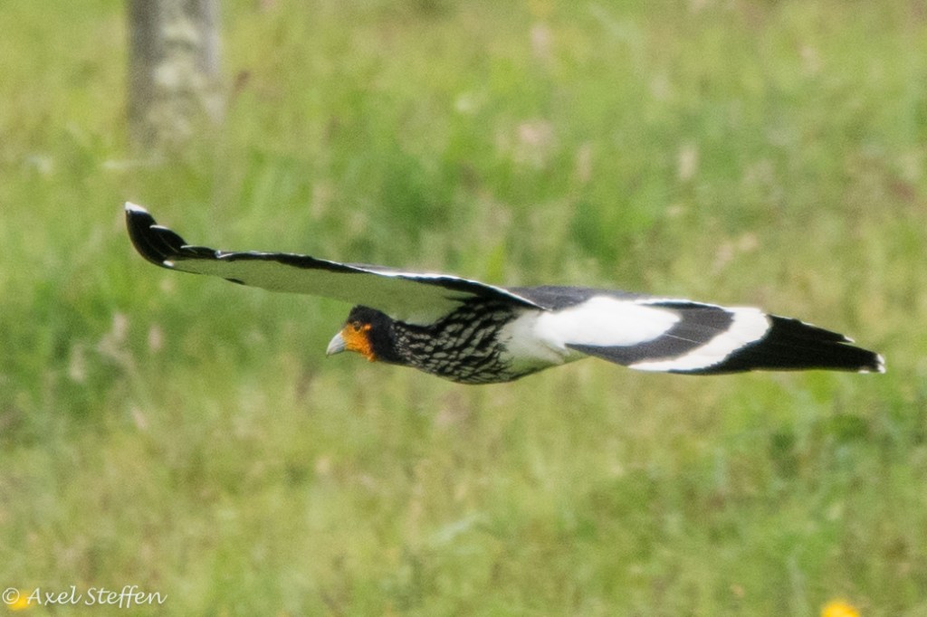 Streifenkarakara – eine Geierfalkenart, übernimmt die Rolle der Krähen und Raben in den Hochanden