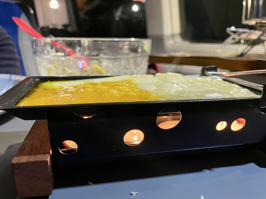 Abends gibt es eines unserer Wohnmobil-Leibgerichte… auf einem kleinen Raclette-to-go !