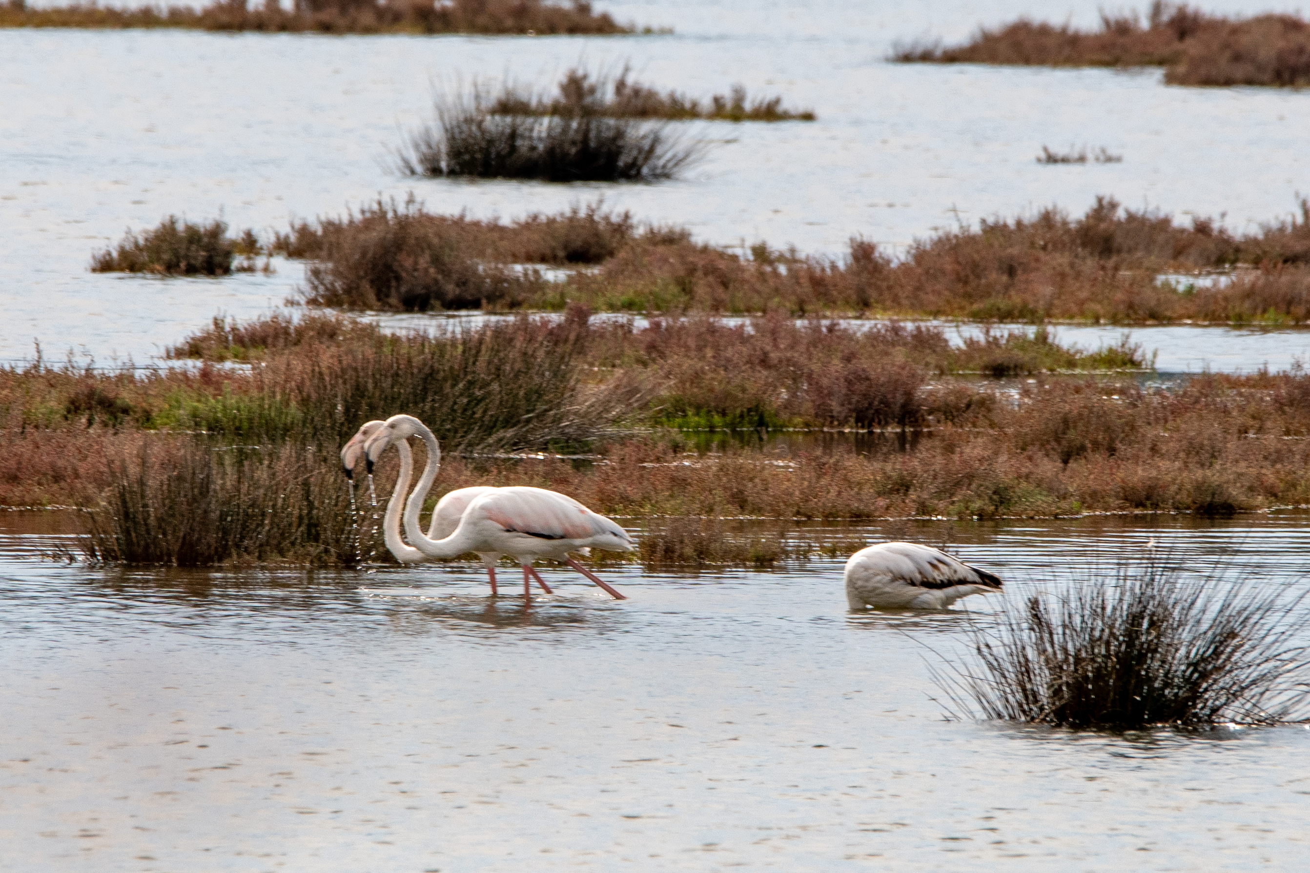 Rosaflamingos auf Nahrungssuche
