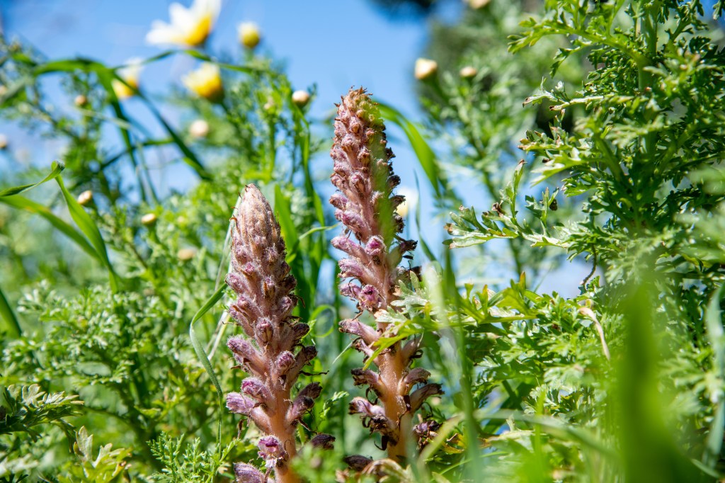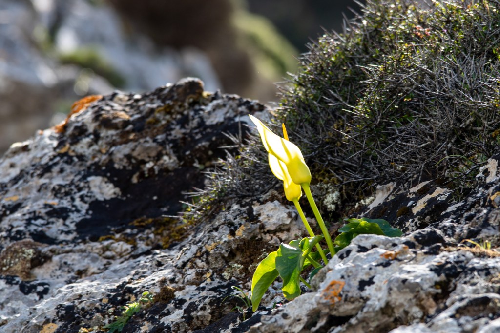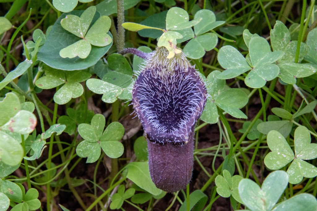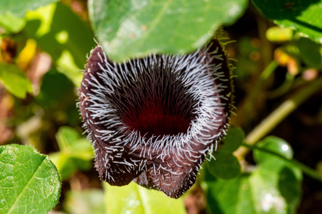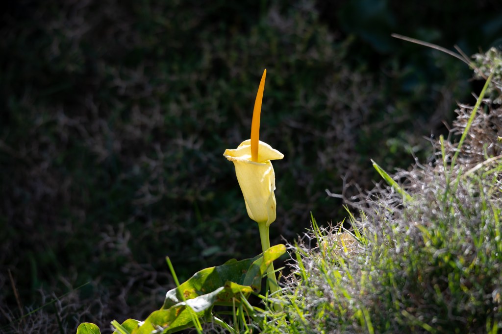 Die Pflanzenwelt Kretas fasziniert. Die oben abgebildete kretische Osterluzei bildet bis zu 18 cm lange Röhren in Form eines Saxophons. Sie sind eine Insektenfalle, in die – durch fauligen Geruch angelockt, kleine Insekten bis zum Grund der Röhre zu den eigentlichen Blüten hineinkriechen; die abwärts gerichteten weissen Haare sorgen dafür, dass sie nicht mehr so schnell wieder herauskommen … bis die Staubbeutel gereift sind und sie mit Pollen beladen sind … neben der kretischen Osterluzei im Tal der Toten haben wir an anderer Stelle ( auf über 1000 m ) den kretischen Aronstab entdeckt … die giftige Pflanze (bereits Berührungen können Hautrötungen und -blasen verursachen) arbeitet mit dem gleichen Prinzip einer Fliegenkesselfalle.