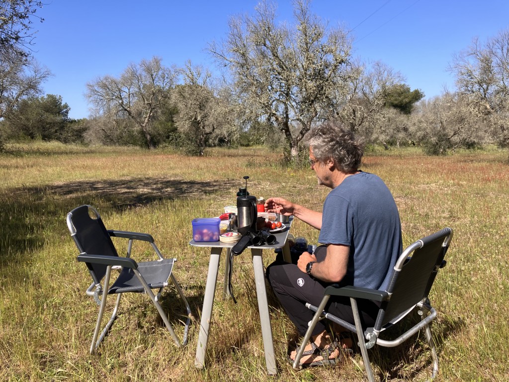5.-11. Mai. Wir starten unsere Rundreise durch Apulien in einem seit 1979 vom WWF betreuten Naturreservat an der Adria Küste (Riserva Naturale Le Gesine). Zwar sind die allermeisten Wege wegen des Brutgeschäfts gesperrt, aber allein aufgrund der allseits präsenten Bienenfresser komme ich auf meine Kosten. Wir frühstücken dort inmitten eines blühenden ehemaligen Olivenhains. Ein weiteres Ziel ist die Südspitze des „Stiefelabsatzes“ ( Salento ) Italiens, wo adriatisches Meer und Ionisches Meer zusammenkommen. Auf dem Weg dahin kommen immer wieder sog. Masserien in den Blick, große herrschaftliche Bauerngehöfte, die optisch an wehrhafte Burgen erinnern … mit hohen befestigten Mauern und häufig mit Türmen und Gräben ausgestattet … ein Relikt aus alter Zeit, in der sich die Bauern den Angriffen z.B. der arabischen Sarazenen oder Piraten erwehren mussten. Heute sind diese Masserien entweder verlassen oder zu Luxushotels mutiert.