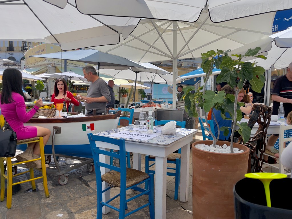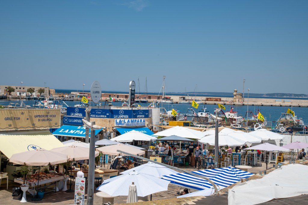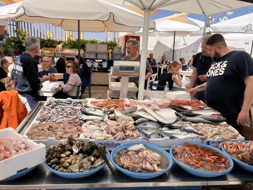 Wir besuchen die Küstenstadt Gallipoli. Fangfrischer Fisch wird hier u.a. unmittelbar am Hafen angeboten.